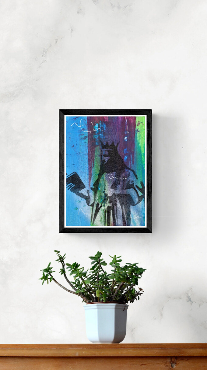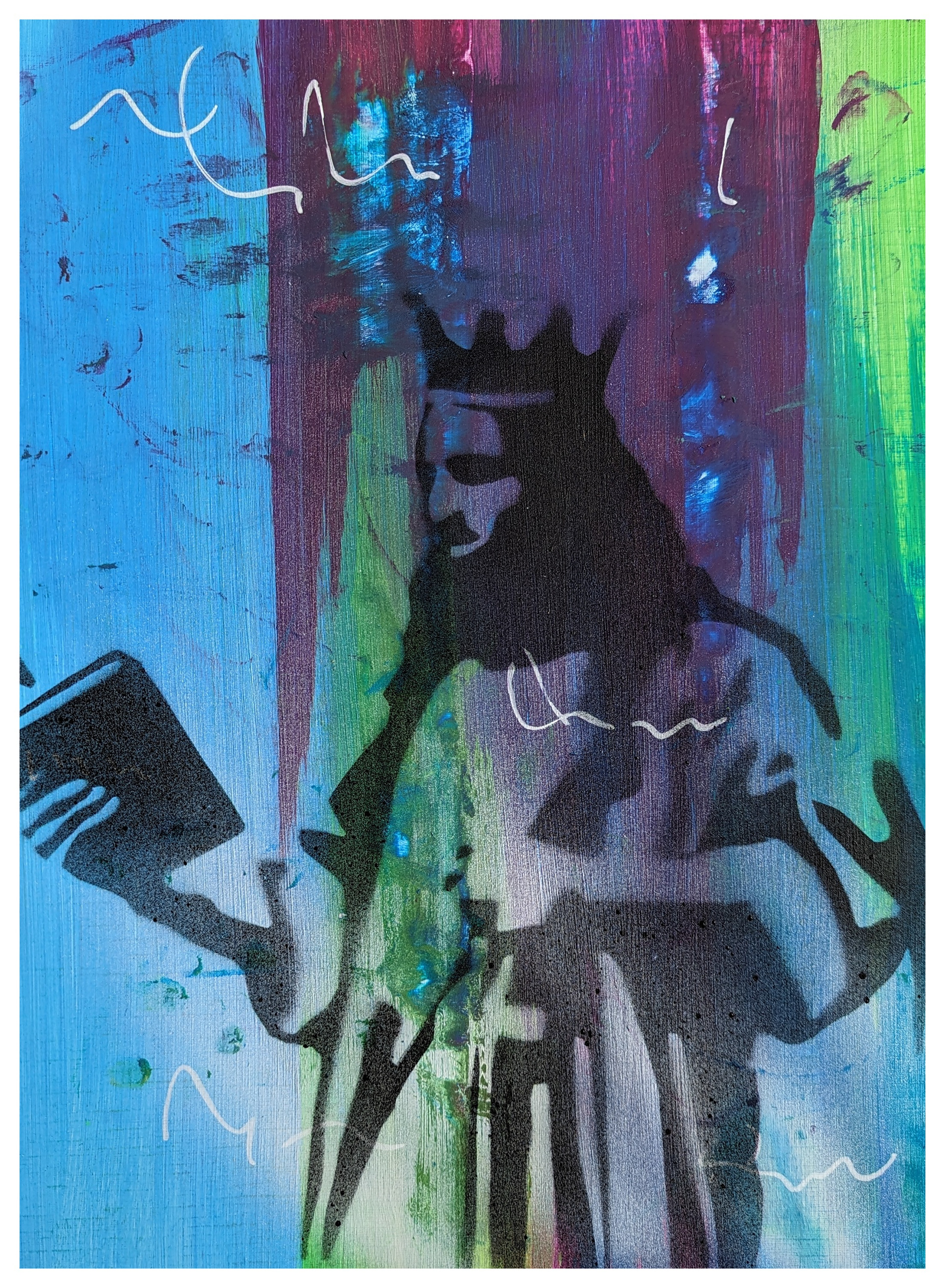 Title: Jesus 230830 - #1 - King of Kings // Artist: Markus Anderschitz // Year: 2023 // Size (cm): 30 x 40 x 0,2 cm // Material: Paper // Medium: Acrylic, Spray Paint, Mixed Media