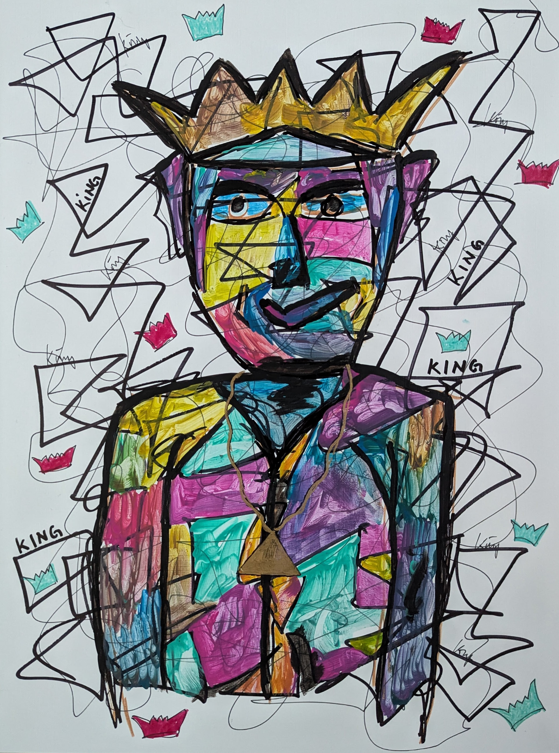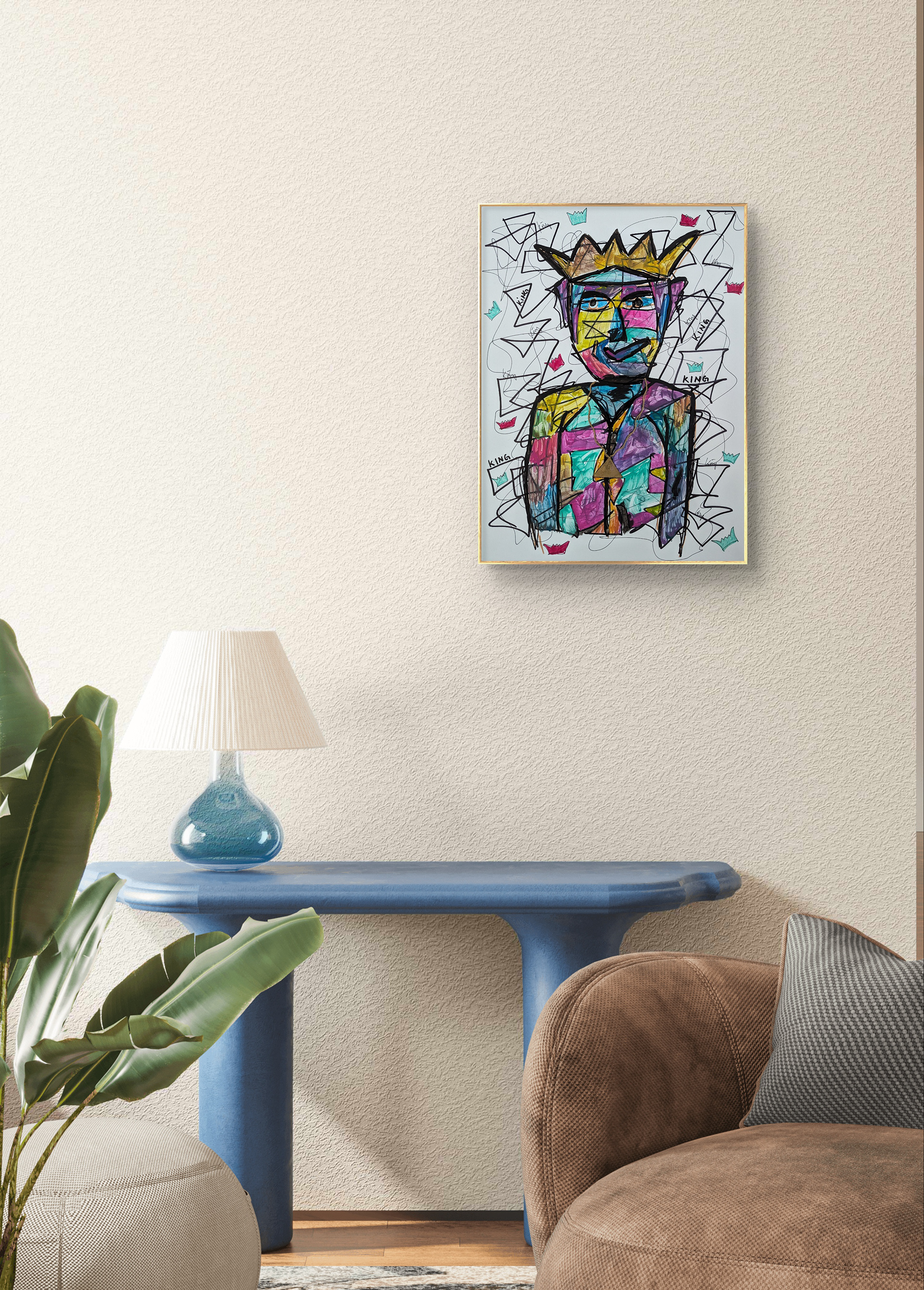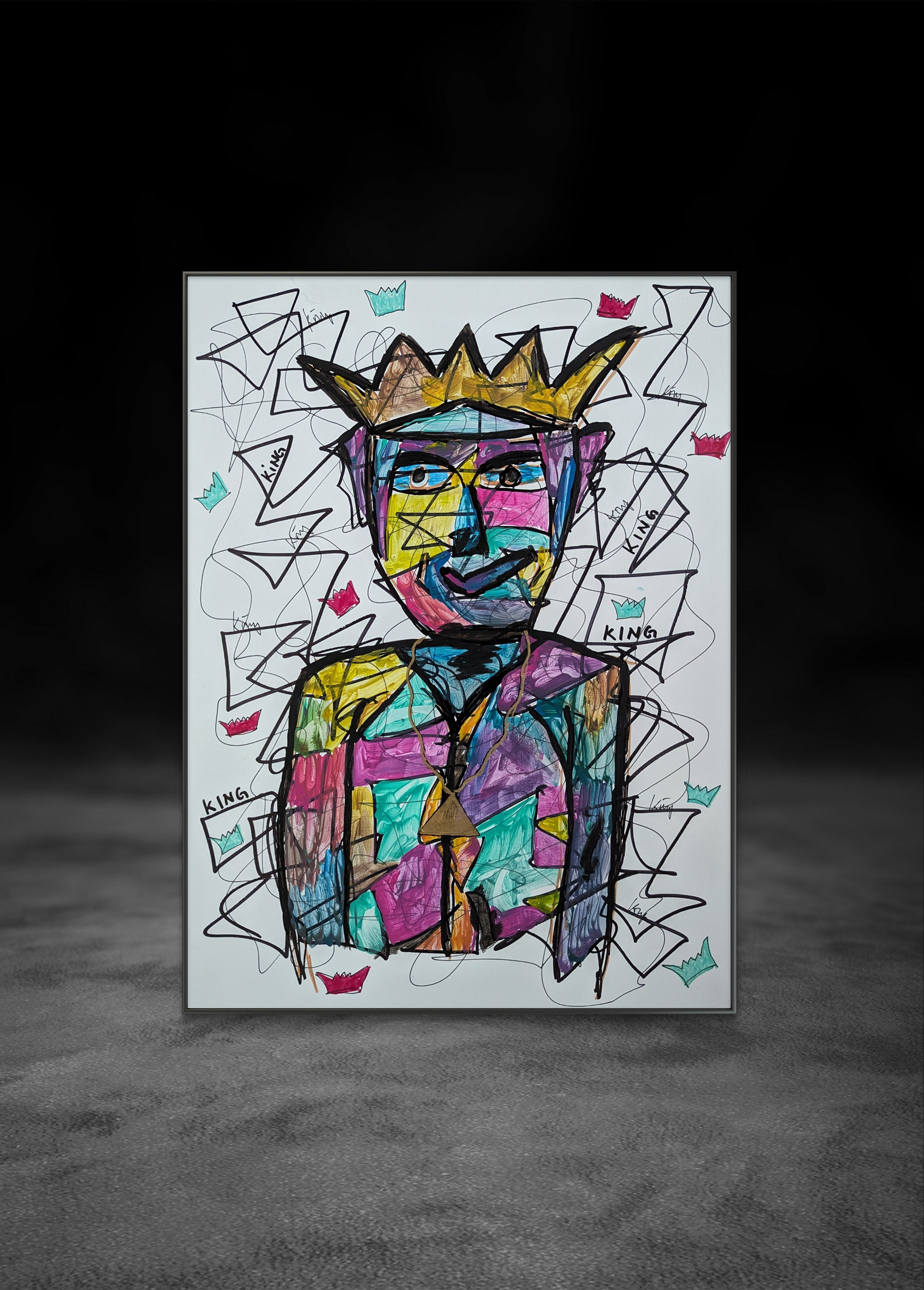 Title: King 240512 // Artist: Markus Anderschitz // Year: 2024 // Size (cm): 30 x 40 x 0,1 cm // Material: Paper 320 g/qm // Medium: Mixed Media, Acryl, Marker