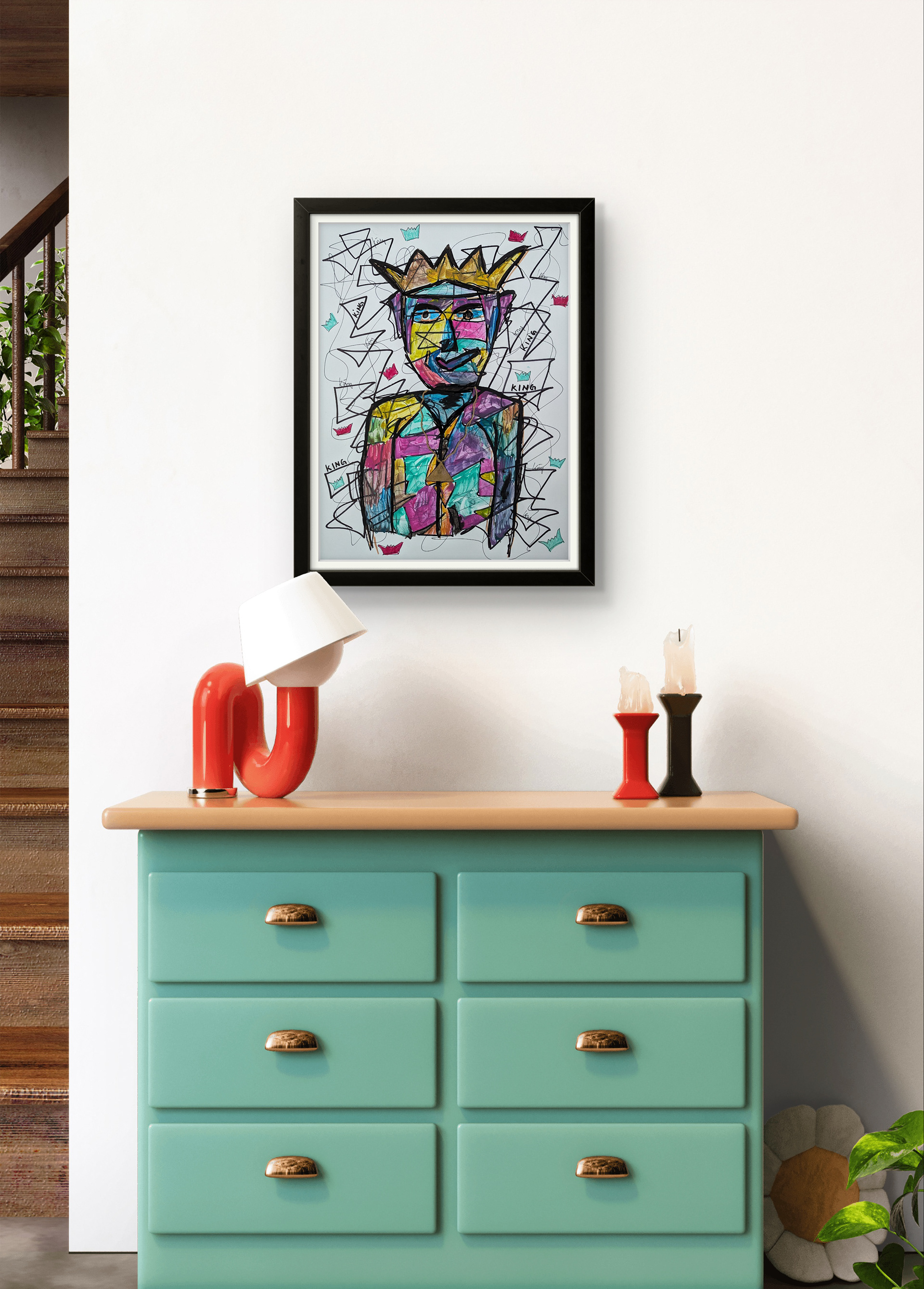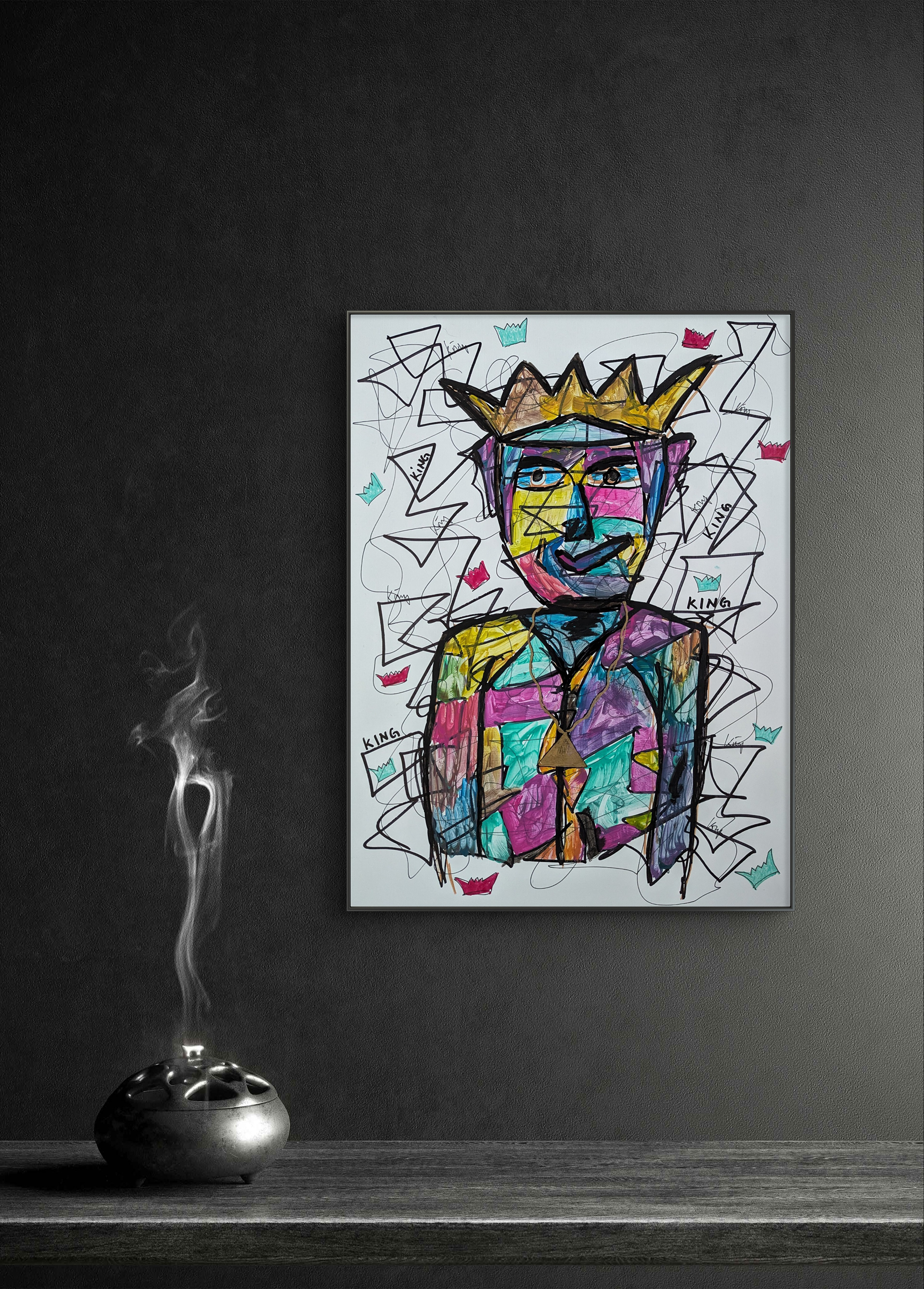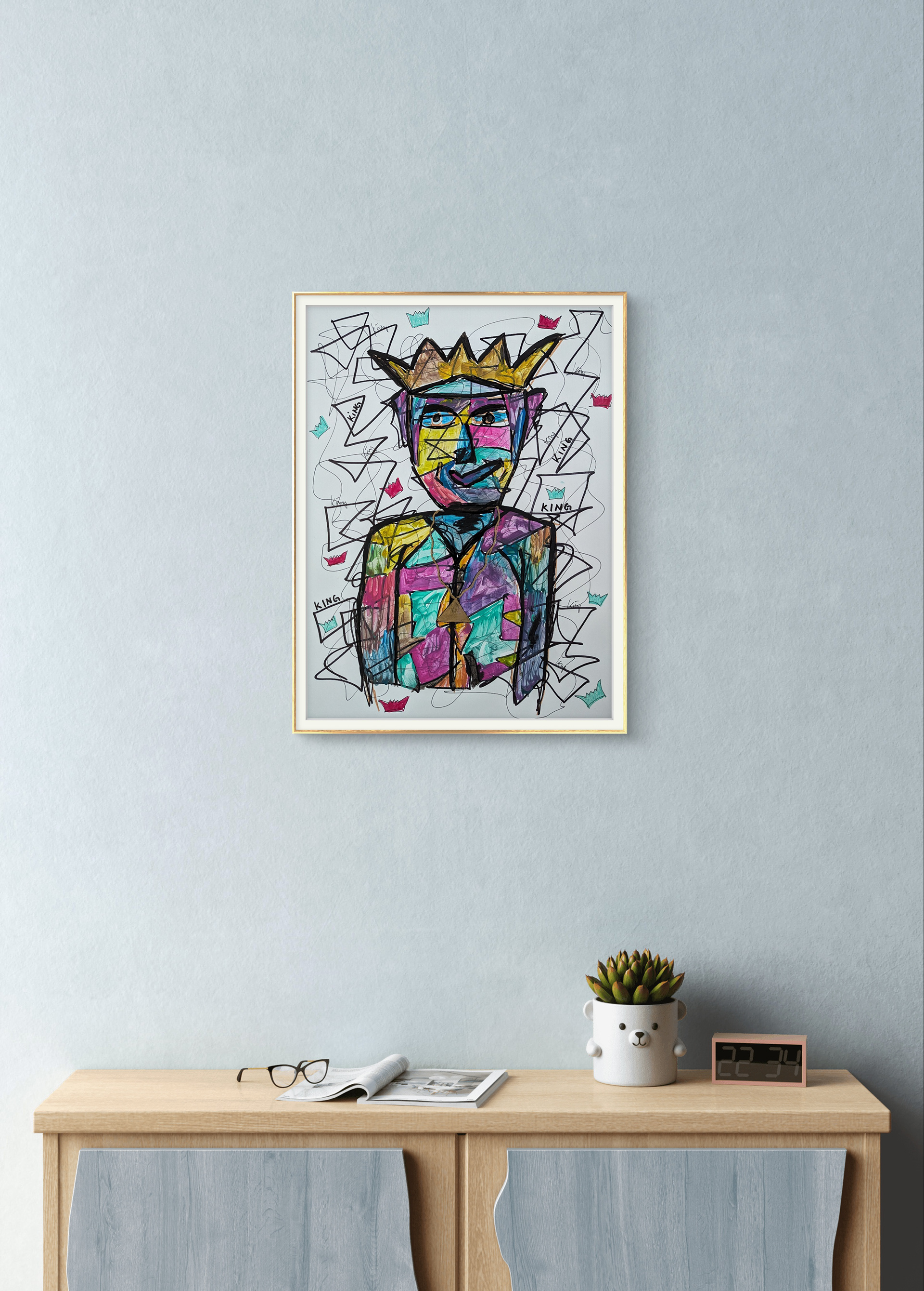Title: King 240512 // Artist: Markus Anderschitz // Year: 2024 // Size (cm): 30 x 40 x 0,1 cm // Material: Paper 320 g/qm // Medium: Mixed Media, Acryl, Marker